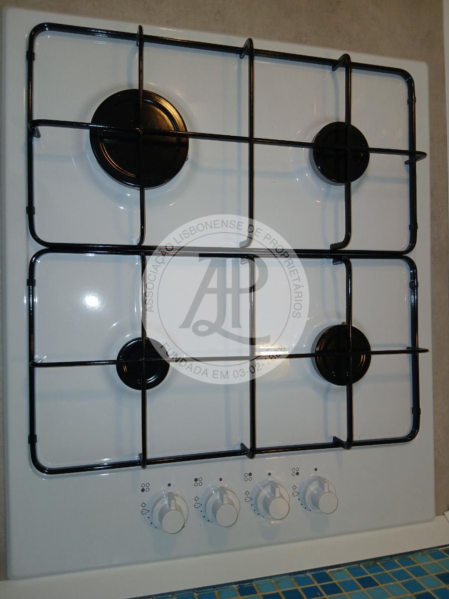 O imóvel dispõe de uma kitchenette equipada com placa, forno, exaustor, esquentador e máquinas.