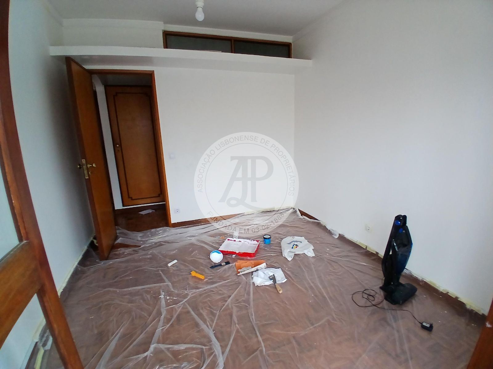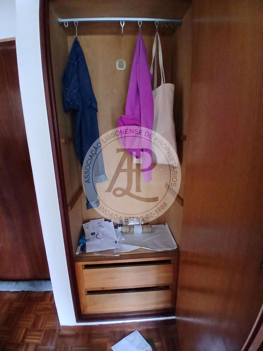 No corredor encontra-se um pequeno roupeiro que oferece apoio ao arrumo.